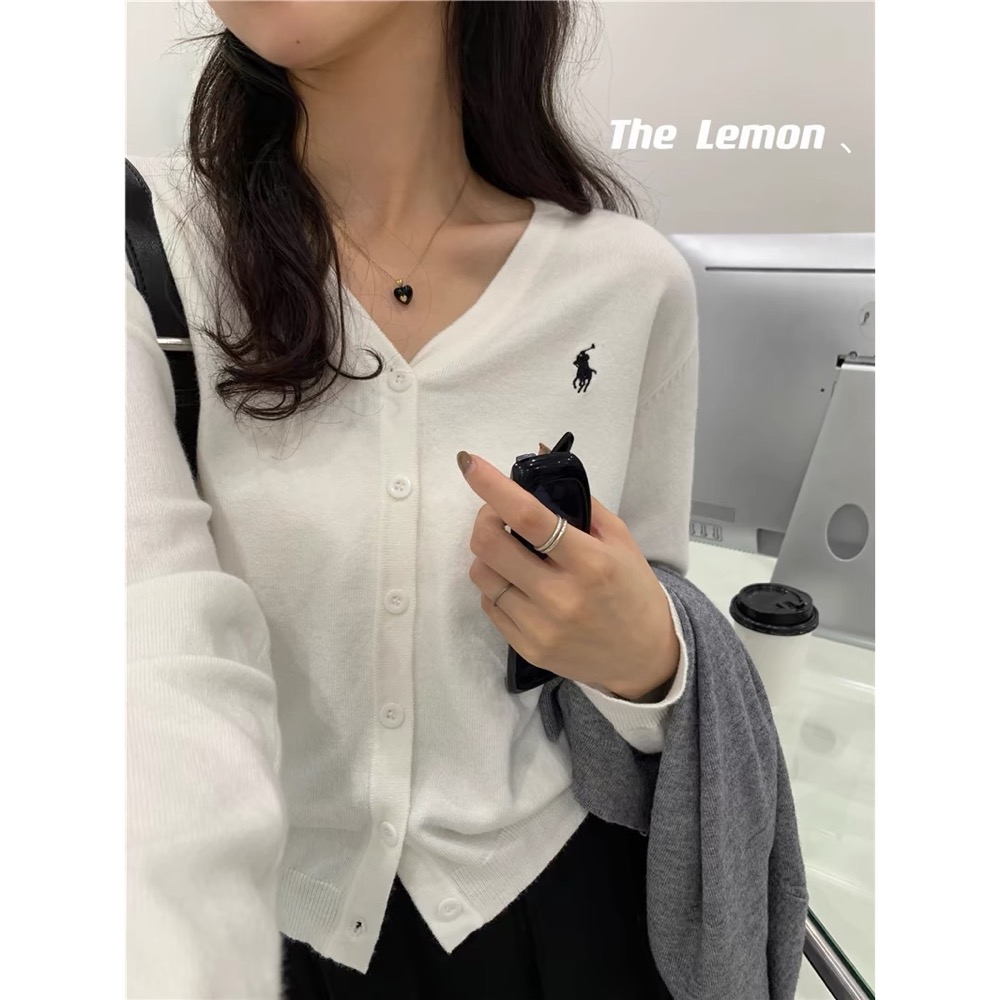 RL polo 針織外套 好氣質溫柔小外套,經典小馬刺繡,薄款修身V领上衣,百搭很推👍 ✔國際運送約十幾天,可以等待再