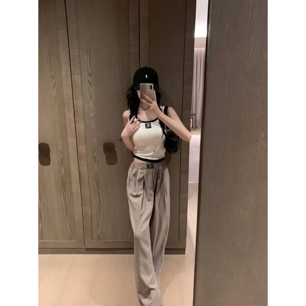 高級傭懶 附胸墊彈力背心 鬆緊腰貼標兩件套 氣質休閒套裝