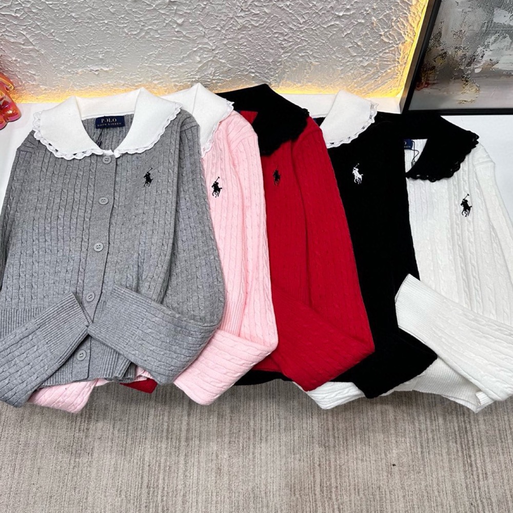 RL polo 好溫柔娃娃領小外套 針織衫 毛衣外套 撞色針織開襟衫 小馬刺繡單排扣甜蜜外套 百搭很推👍 ✔️ 國際運送