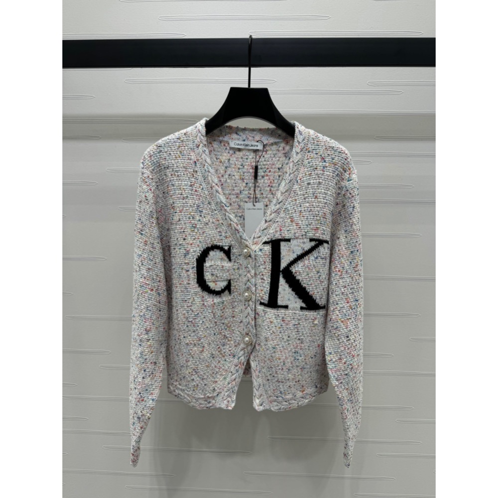 CK修身外套 結子紗V領針織外套 復古立體彩色結子紗線 重工高密的編織工藝 下擺V口設計顯得不再千篇一律,超有氣質超好看!