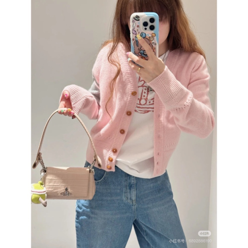 Vivienne Westwood 外套 土星撞色 V領顯瘦針織外套 小外套 羊毛開襟衫 學院風穿搭 穿搭必備 灰色 粉色SML.百搭好氣質滿滿 自留款❤️