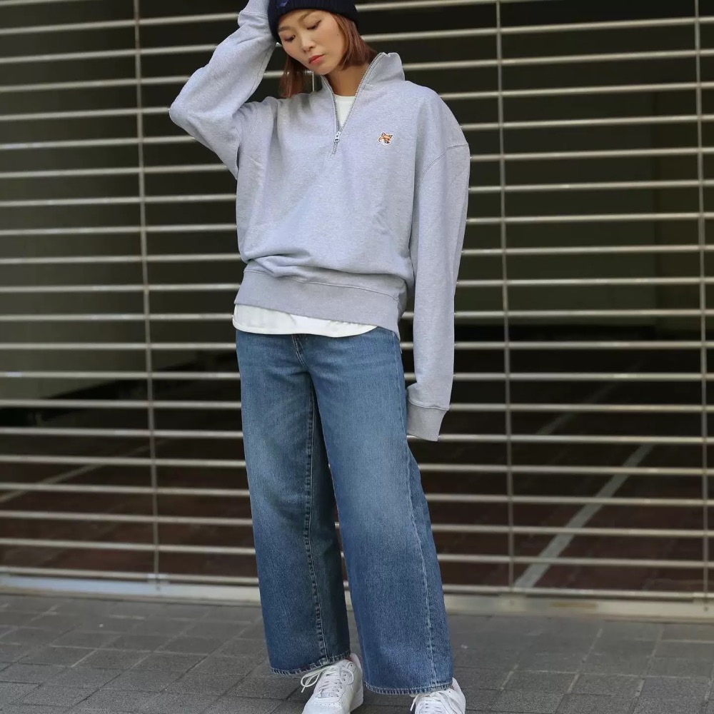 MK 法國🇫🇷小狐狸美式復古半拉鏈長袖T恤 上衣 衛衣 大學T,經典熱賣款,百搭基本款,實穿 怎麼搭都可以的 法國🇫🇷MK maison kitsune