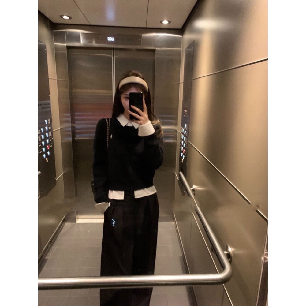 RL polo 套裝 針織衫 闊腿褲 休閒褲 裙子 短裙 返校生假兩件襯衫領拼接毛衣設計 秋冬針織衫 清爽有氣質