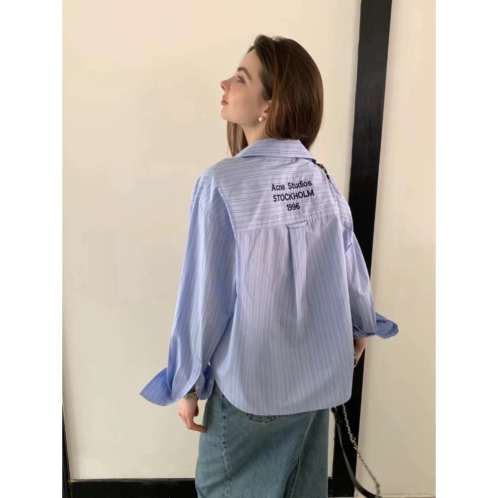 Acne 襯衫 小馬標 後背字母刺繡條紋襯衫,漂亮好氣質,單穿或當開衫小外套,防曬防風外套,戴個棒球帽,休閒又顯白顯瘦