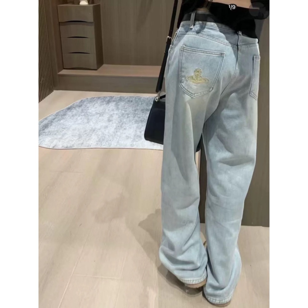 Vivienne Westwood 牛仔褲 高腰顯瘦 經典土星刺繡 直筒修身 百搭長褲 ✔️國際運送約十幾天,可以等待