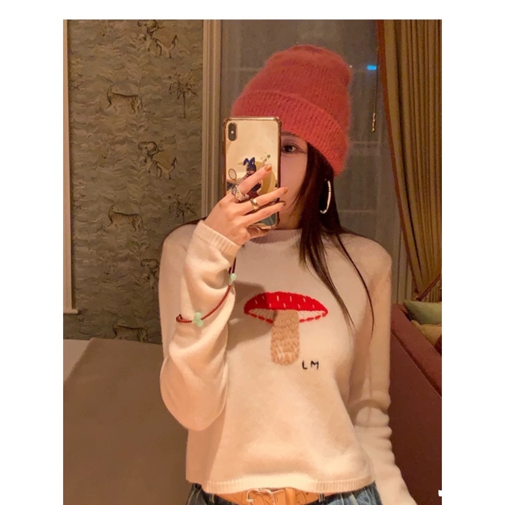 針織衫 毛衣 “高質羊絨”軟糯雲朵觸感小蘑菇套頭毛衣 圓領 羊毛基礎款打底單穿都好看:)