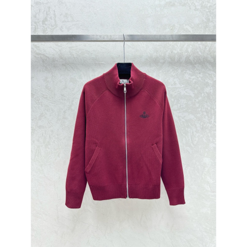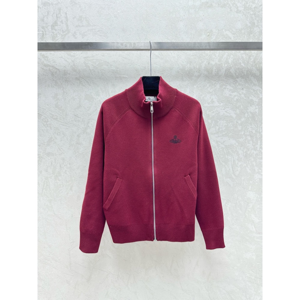 Vivienne Westwood 外套 棒球外套 夾克 美式復古~ 簡約純色刺繡土星logo針織拉鍊立領外套,顏色:玫紅色 綠色,尺碼:36.38.40。