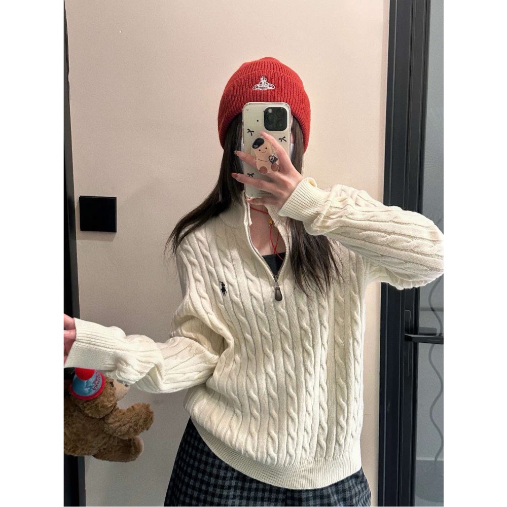 RL polo 毛衣 針織衫 上衣 T恤 經典戰馬簡約百搭 半拉鍊立領套頭衫 絞花羊毛衫