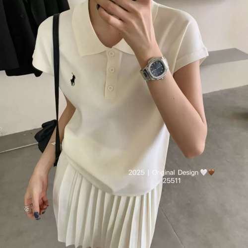 RL 套裝 短裙 針織衫 polo領冰絲針織衫半身裙兩件套裝 經典款戰馬美式復古小馬標上衣+百褶短裙 清爽有氣質 永遠經典 分開穿也百搭