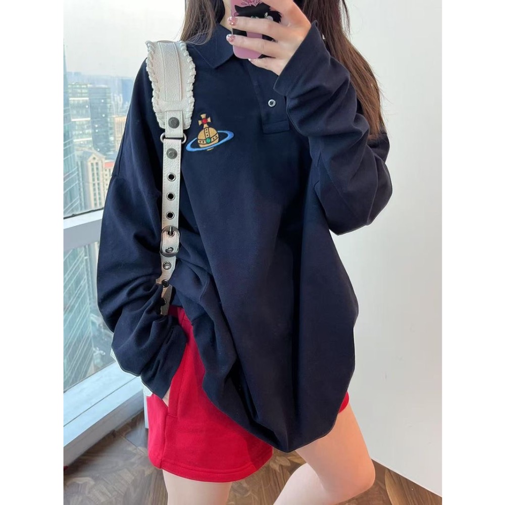 Vivienne Westwood polo衫 上衣 T恤 經典土星刺繡 好氣質 甜酷少女感 新款學院風土星環刺繡polo衫多巴胺翻領踢 男女同款 顯瘦長袖