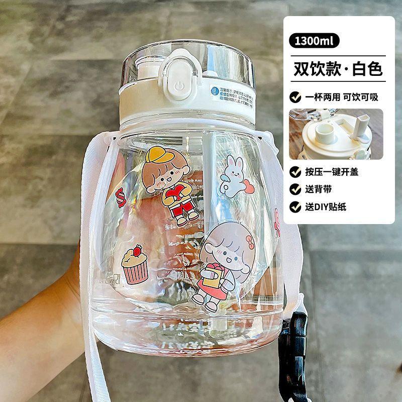 台灣現貨 吸管杯 可愛 大肚水杯 大容量 杯子 女學生 便攜 夏季塑膠杯 水壺 玻璃杯 玻璃水壺 批發