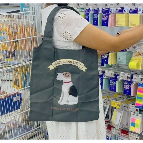 👍Wirefoxterrier 剛毛獵狐梗 環保袋~水彩畫坐下(深灰)👍👍👍👍