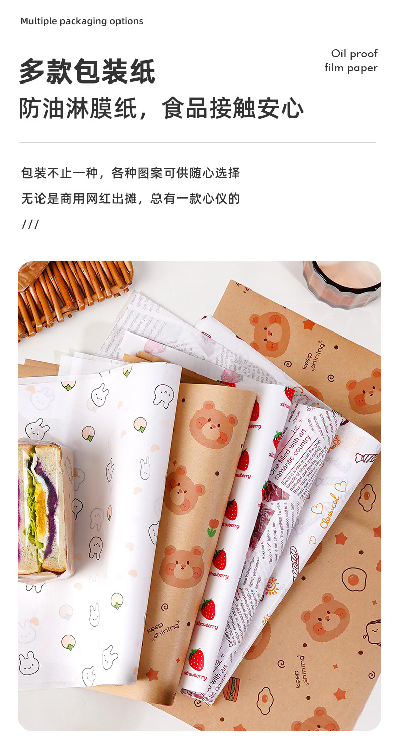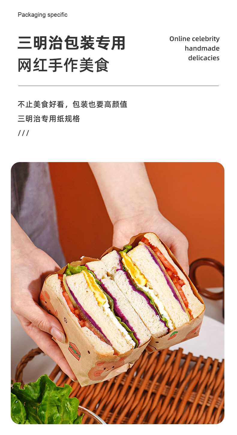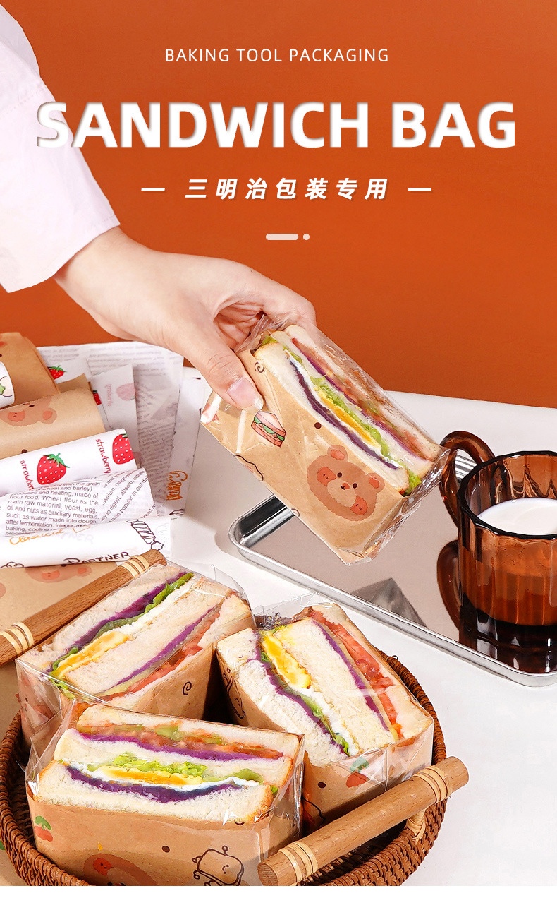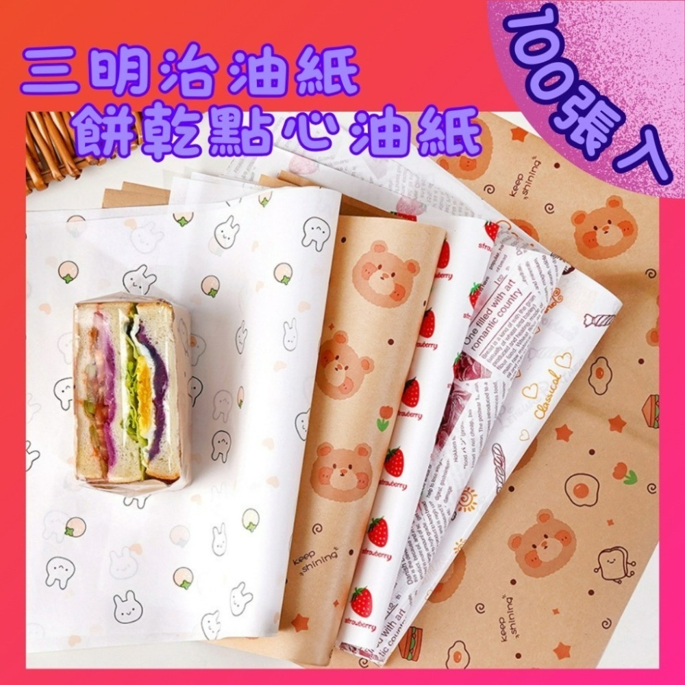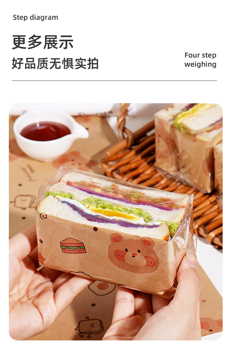 請注意,產品是三明治包裝紙100張,不包含照片中的透明包裝袋及封口貼紙,包裝袋及貼紙另有賣場
