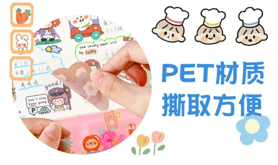 材質 : 貼紙本身為PET,底下的離型紙是PVC
