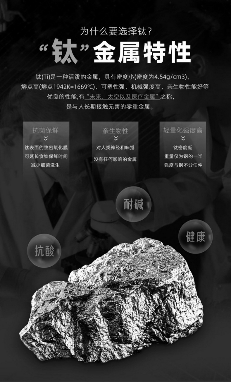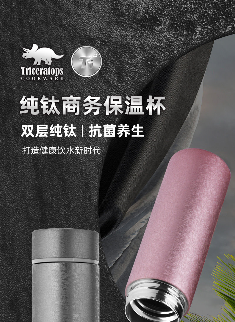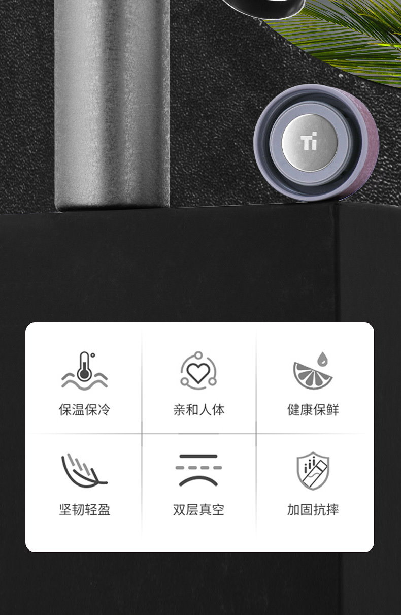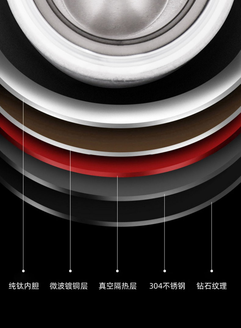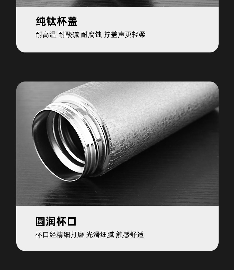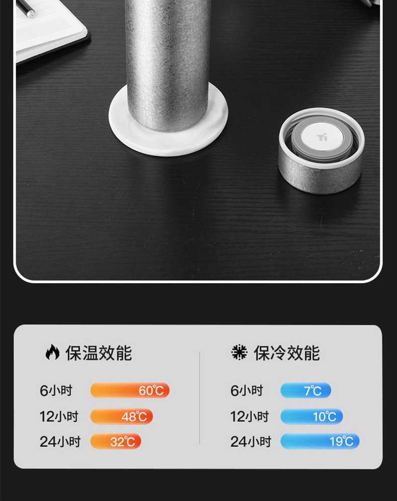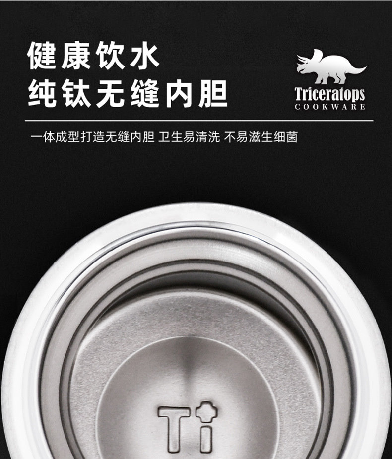 材質 : 304不銹鋼外殼+純鈦內膽(包含杯蓋內芯)