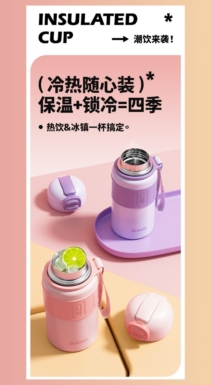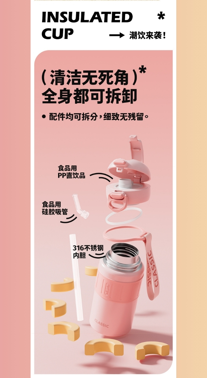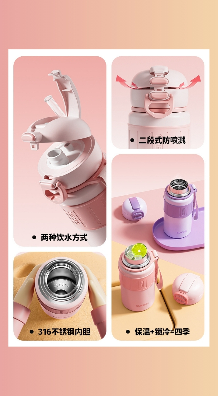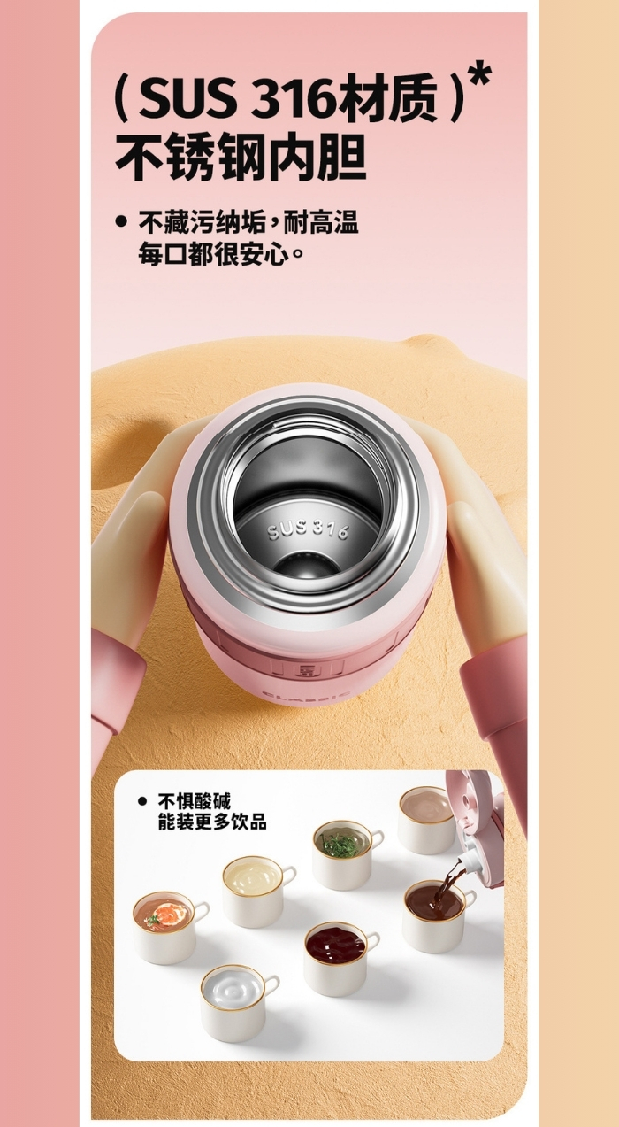 材質 : (外殼)201不鏽鋼(內膽)304+316(杯蓋)PP+矽膠