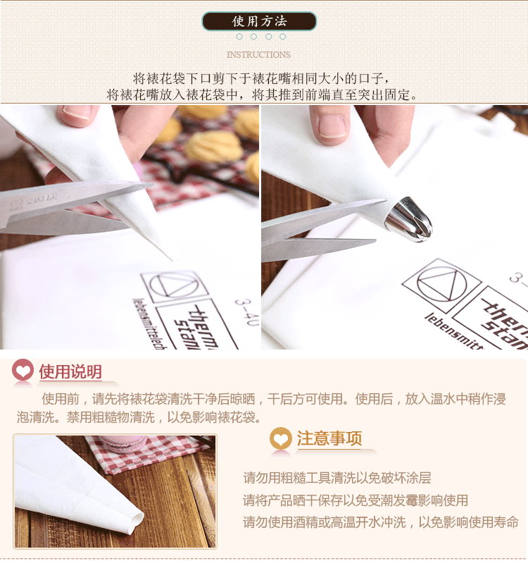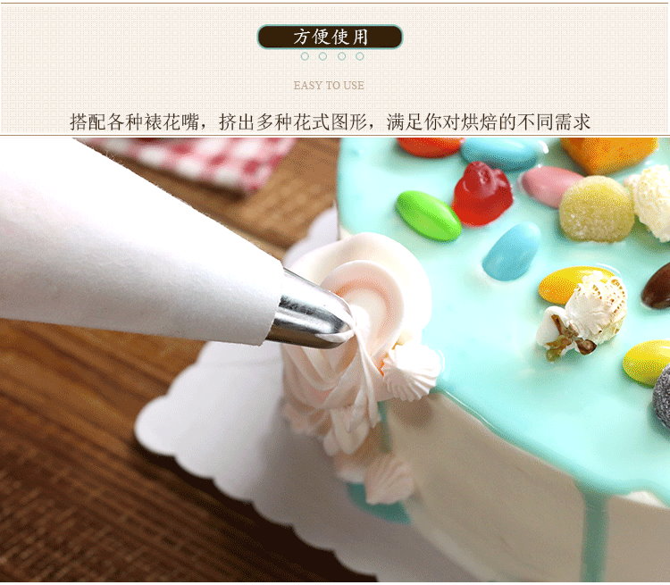做擠花餅乾很好用,不易爆裂,好清洗可重覆使用,尤其是做羅密亞餅乾,麵糰會比較乾,用塑膠材質的一下就擠破了,要用布的才好用