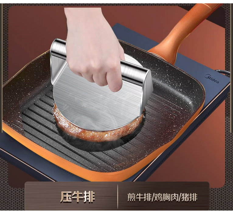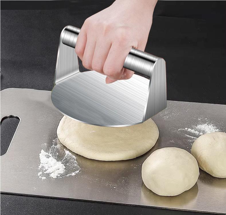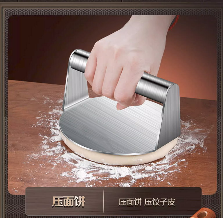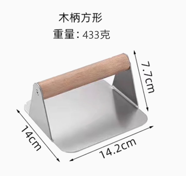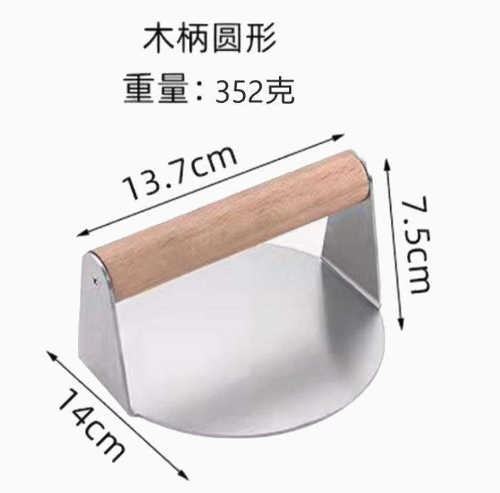 用途: 壓牛排、壓平煎漢堡肉、壓平餡餅、水餃皮、麵皮....等,也可以在做重乳酪蛋糕時,壓平底部的碎餅乾底