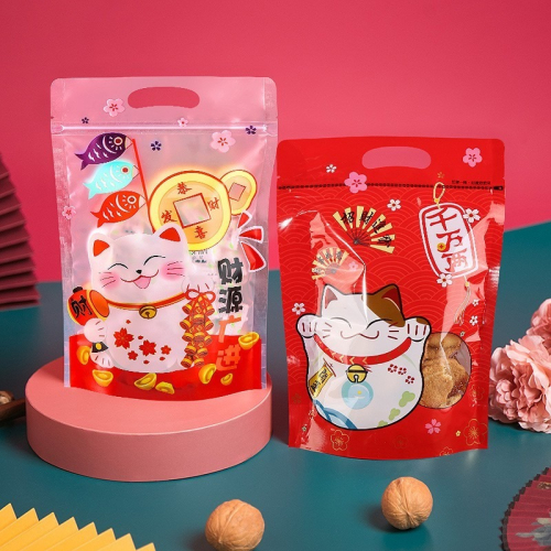 (加厚25入站立夾鏈袋) 招財貓夾鏈袋 招財貓自立袋 點心袋 餅乾袋 雪Q餅袋 牛軋糖袋 新年糖果袋 牛軋餅包裝袋