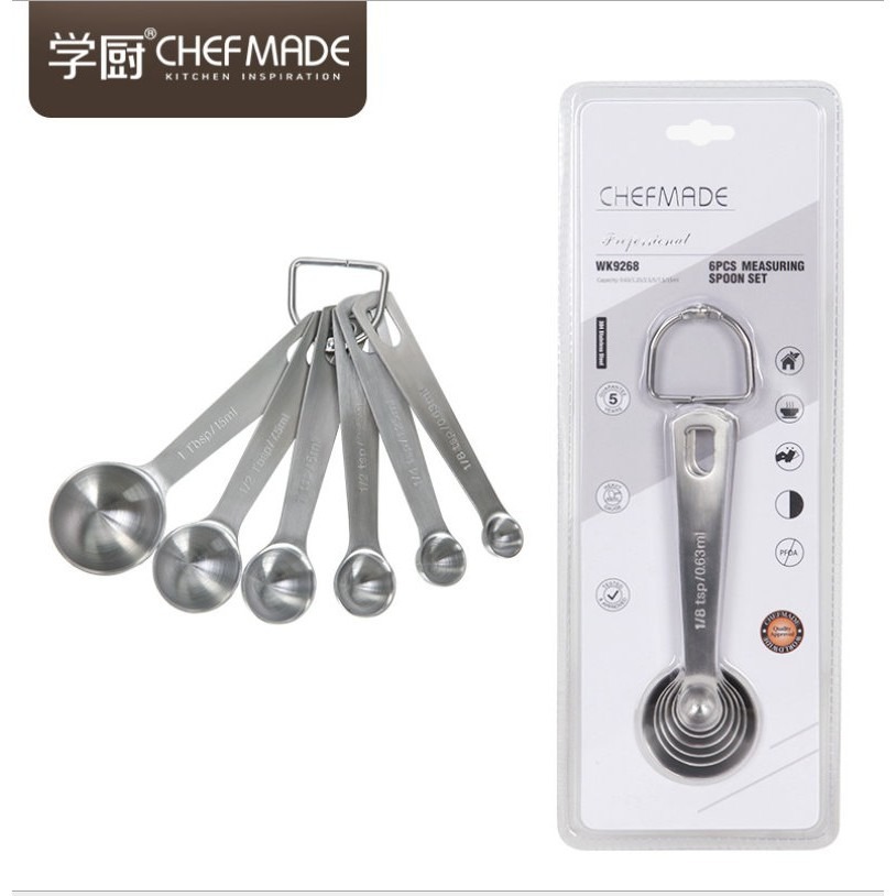 chefmade學廚304不鏽鋼量勺 量勺6件套装 刻度勺奶粉勺 厨房量匙 帶刻度量匙 湯匙茶匙 調味匙 料理烘培度量匙