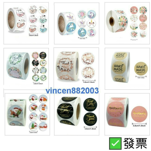 【巔品】🌺整捲貼紙500枚🌺 烘焙封口貼 thank you 感謝貼紙 西點包裝封口貼 烘焙封口貼 信封封口貼紙