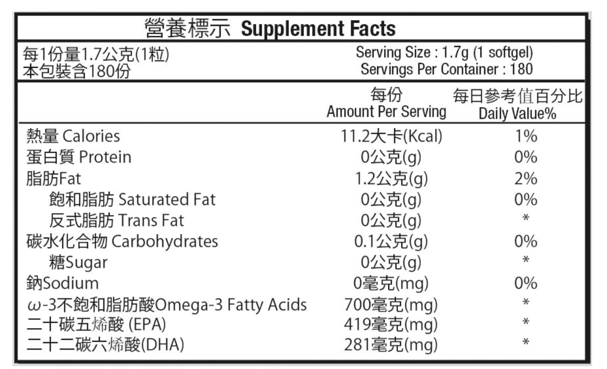 ✅ 每粒添加二十碳五烯酸(EPA) 419毫克、二十二碳六烯酸(DHA) 281毫克