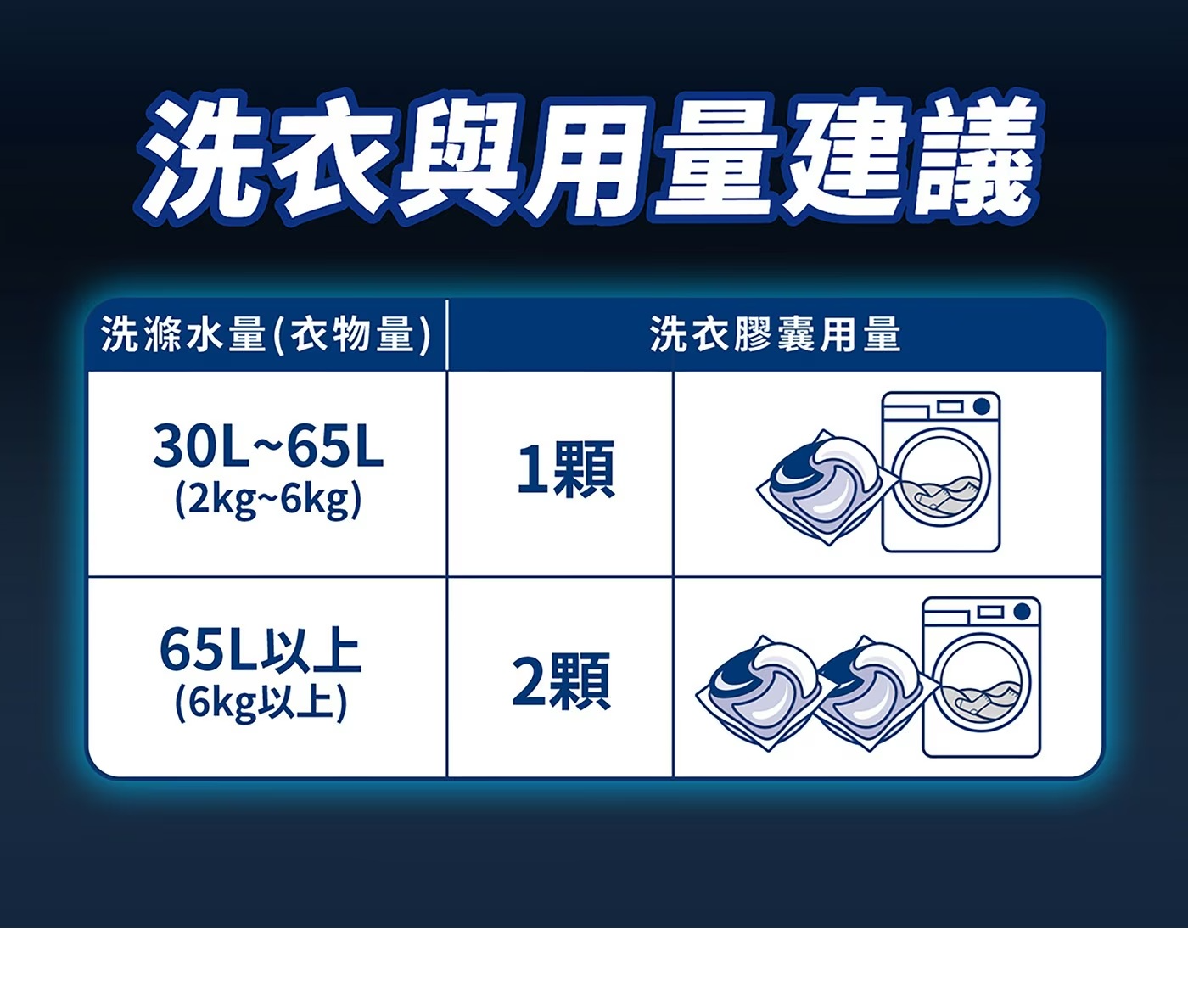 •請將洗衣膠囊放入洗衣槽底部,以利膠囊外膜能快速溶解