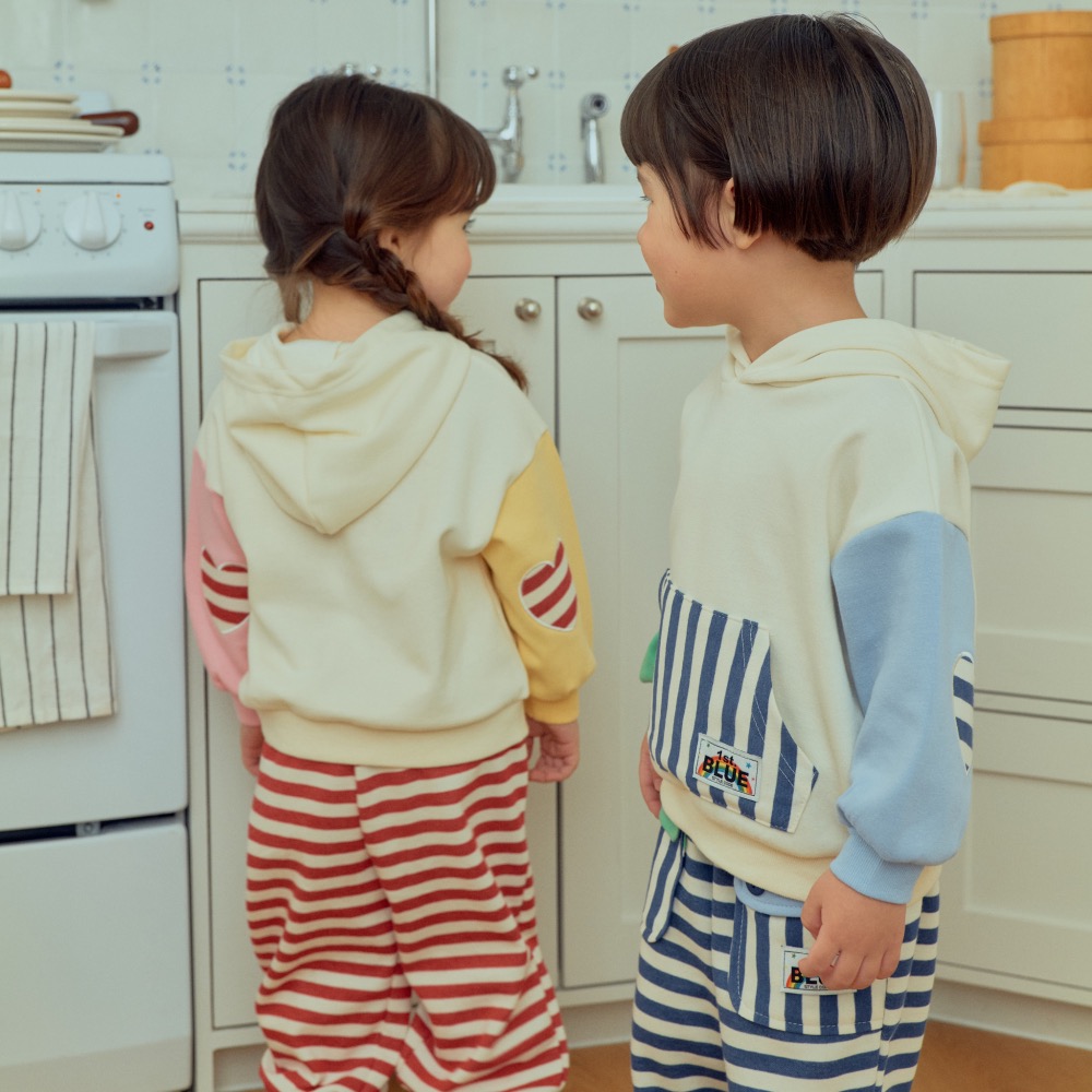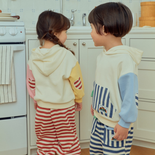 1stblue春季口袋條紋連帽帽T