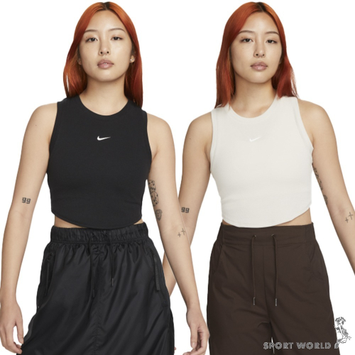 Nike Sportswear Essentials 女子羅紋短款背心採用彈性羅紋面料結合緊身版型,營造舒適的穿著感受。