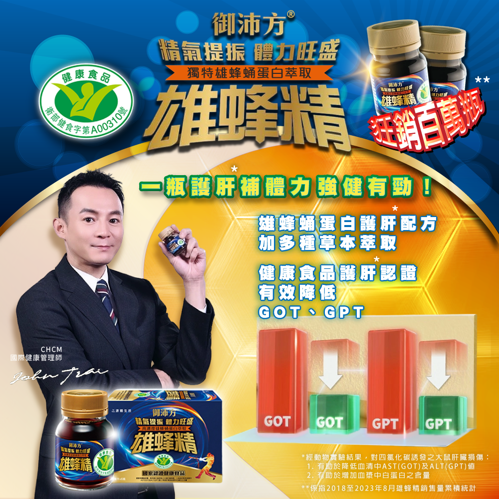 【御沛方雄蜂精】是通過衛福部嚴格審查、國家認證真正有效的健康食品