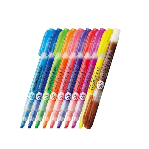 包括螢光筆少見的中間色調,讓畫重點不再只有單調的選擇;記號筆採用粗達4.0mm的斜尖式筆尖,