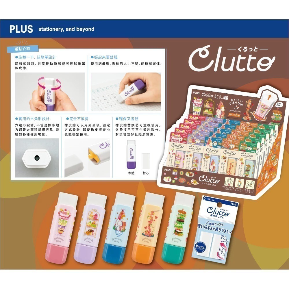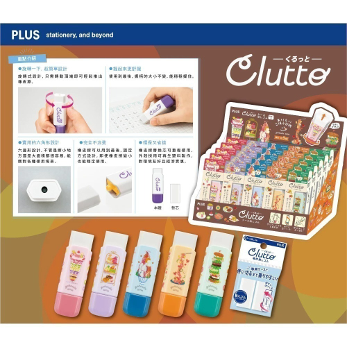 - 旋轉式設計,只需轉動頂端即可輕鬆推出橡皮擦