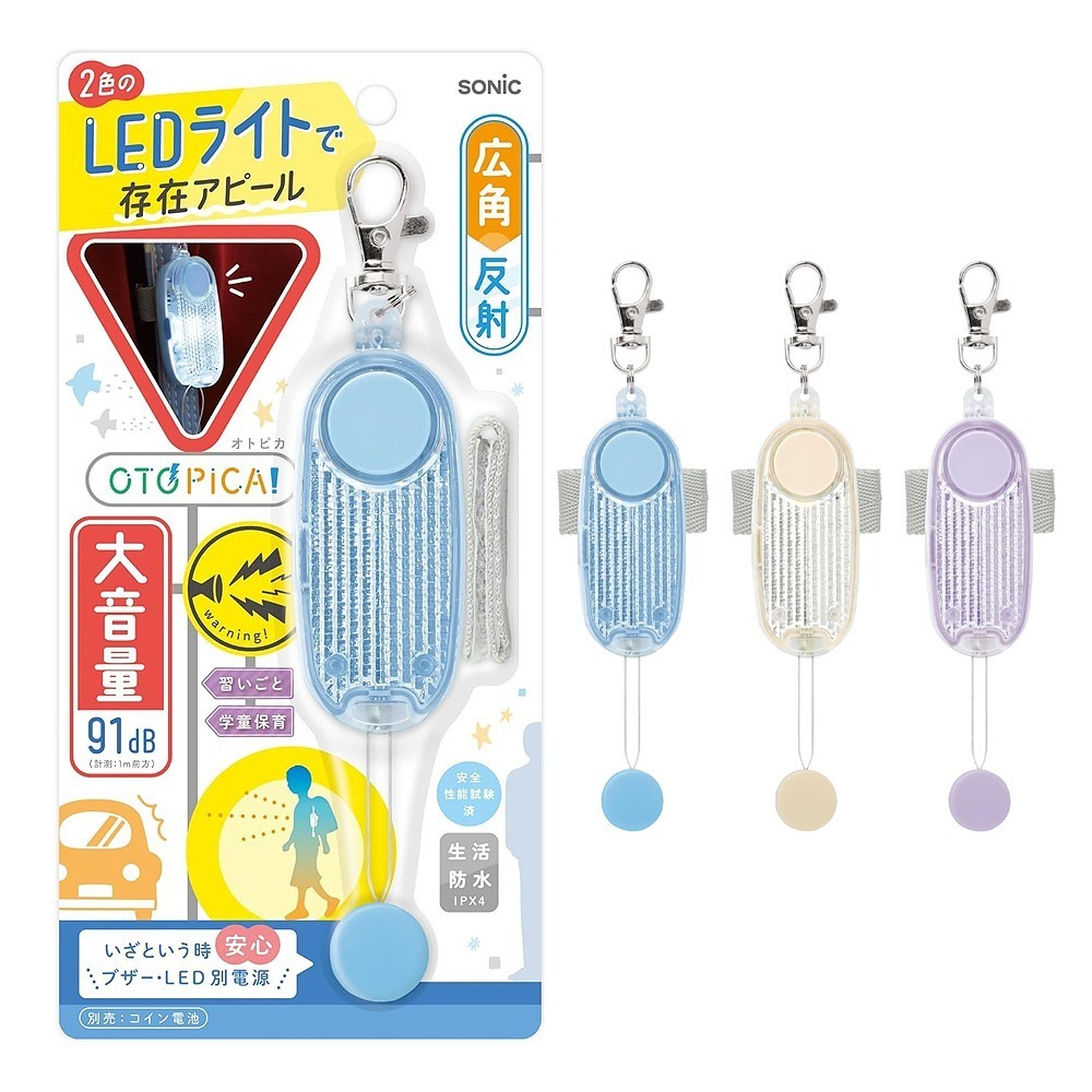 🎒日本SONIC OTOPICA LED燈安全警報器|LED反光+大音量警報|雙電源更安心