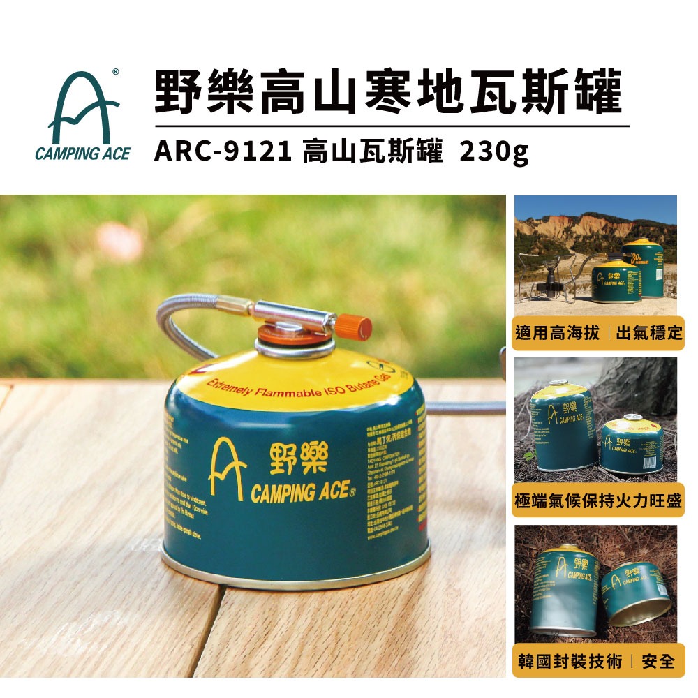 產品規格 (出貨不含拍照配件) 品名:ARC-9121 高山寒地異丁烷瓦氣罐 230g/罐