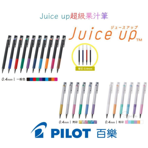 百樂PILOT ♕台灣現貨,快速出貨♕ ♕嚴格把關,品質保證♕ ➤品牌: 百樂PILOT ➤品牌理念:百樂就是好筆 ➤商品特色   四點支撐筆尖 採四點支撐的新型筆尖,結合錐狀及針狀筆尖優點,書寫更流暢。   新型墨水 墨水進化再升級,更加耐水、耐光。   首創最細粉亮彩 世界首創最細的粉亮彩0.4mm粉亮彩系列在黑紙上依然清楚顯色   重心穩定 金屬筆尖設計,重心低書寫更穩定。 #Space幸福空間#百樂PILOT#百樂#PILOT#Juice up超級果汁筆#超級果汁筆#Juice up#原子筆#書寫用品#筆 ➤注意事項 略 ➤商品規格 規格: LJP-20S3/4/5 Juice up超級果汁筆0.3、0.4、0.5 mm LJP-20S4 Juice up超級果汁筆亮彩0.4 mm LJP-20S4 Juice up粉彩超級果汁筆0.4 mm 材質:塑膠、金屬、染料 內容: 1入 重量:略 顏色:多色 貨源:本賣場 ---------------📒關於訂單--------------- ✎台灣現貨供應,並於工作日24小時內出貨。 ✎有任何問題,線上快速諮詢,歡迎善用聊聊。 ✎遇到訊息大量時,服務人員將依序處理,如有怠慢之處還請包涵,請勿用評價作溝通管道哦。 ✎喜歡我們商品與服務,歡迎給我們滿滿★★★★★顆星哦。 ✎商品持續上新,邀請您關注我們。  ---------------🚛關於運費--------------- ✎獨家免運優惠 滿額優惠:單筆訂單滿500元 運費30元、單筆訂單滿1000元 免運 週三領券:OK超商99免運、萊爾富199免運 ✎如選購電子商品或易碎商品,爲確保品質建議優先考慮賣家宅配(賣場配合物流為黑貓、宅配通or郵局)。 ✎倘若受其它可能導致運送時間延宕之期間(如送禮旺季等),會依實際物流時間為主。 ---------------✪關於售後服務--------------- ✎購買商品後如對於產品細節有不清楚的地方,歡迎善用聊聊線上諮詢。 ✎多數商品均有提供原廠保固,在保固期間如商品非因自身使用不當所造成之故障或損壞,本賣場將協助處理保修事宜,檢修期間依廠商為主。