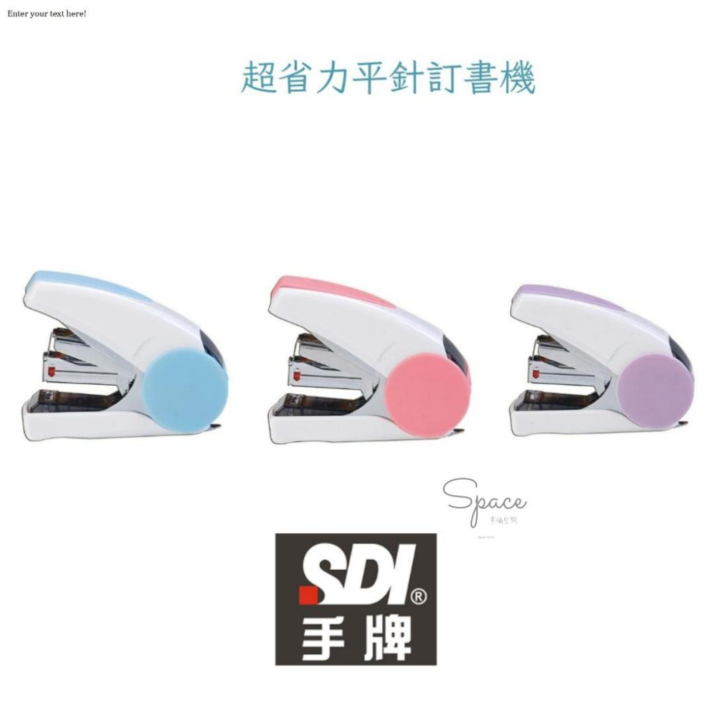 SDI 手牌 ♕台灣現貨,快速出貨♕ ♕嚴格把關,品質保證♕ ➤品牌: SDI 手牌 ➤品牌理念:設計,來自體貼人性 ➤商品特色 專利省力安全回彈設計,可裝訂30張影印紙(70g/m2),可放雙排10號針,省時省力又安全 #Space幸福空間#SDI手牌#SDI#壹指訂10號省力平針訂書機#釘書機#手牌#10號訂書針#10號錠書針#釘書機#訂書機#裝訂 ➤注意事項 略 ➤商品規格 材質:金屬、塑膠 內容: 1入 重量: 略 顏色: 略 貨源:本賣場 ---------------📒關於訂單--------------- ✎台灣現貨供應,並於工作日24小時內出貨。 ✎有任何問題,線上快速諮詢,歡迎善用聊聊。 ✎遇到訊息大量時,服務人員將依序處理,如有怠慢之處還請包涵,請勿用評價作溝通管道哦。 ✎喜歡我們商品與服務,歡迎給我們滿滿★★★★★顆星哦。 ✎商品持續上新,邀請您關注我們。  ---------------🚛關於運費--------------- ✎獨家免運優惠 滿額優惠:單筆訂單滿500元 運費30元、單筆訂單滿1000元 免運 週三領券:OK超商99免運、萊爾富199免運 ✎如選購電子商品或易碎商品,爲確保品質建議優先考慮賣家宅配(賣場配合物流為黑貓、宅配通or郵局)。 ✎倘若受其它可能導致運送時間延宕之期間(如送禮旺季等),會依實際物流時間為主。 ---------------✪關於售後服務--------------- ✎購買商品後如對於產品細節有不清楚的地方,歡迎善用聊聊線上諮詢。 ✎多數商品均有提供原廠保固,在保固期間如商品非因自身使用不當所造成之故障或損壞,本賣場將協助處理保修事宜,檢修期間依廠商為主。
