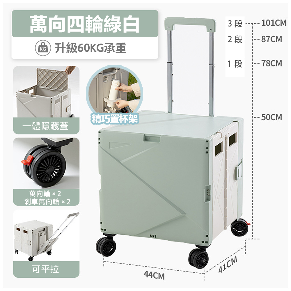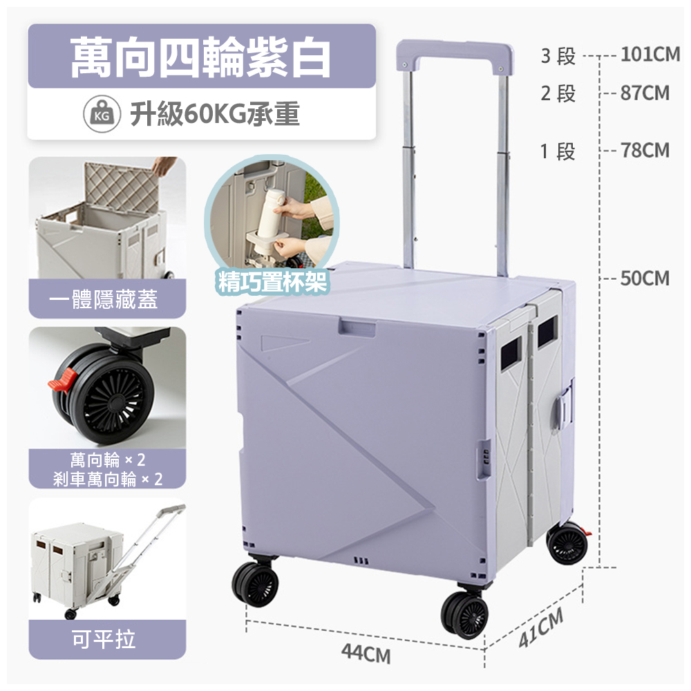 【商品名稱:萬向四輪折疊購物車含杯架可平拉款】