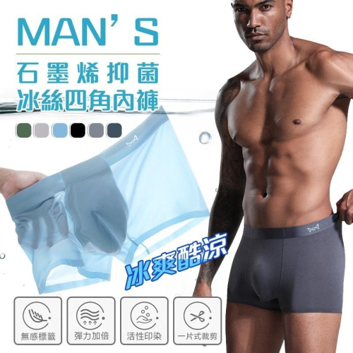 商品名稱:石墨烯抑菌冰絲四角內褲 爽滑無痕冰絲