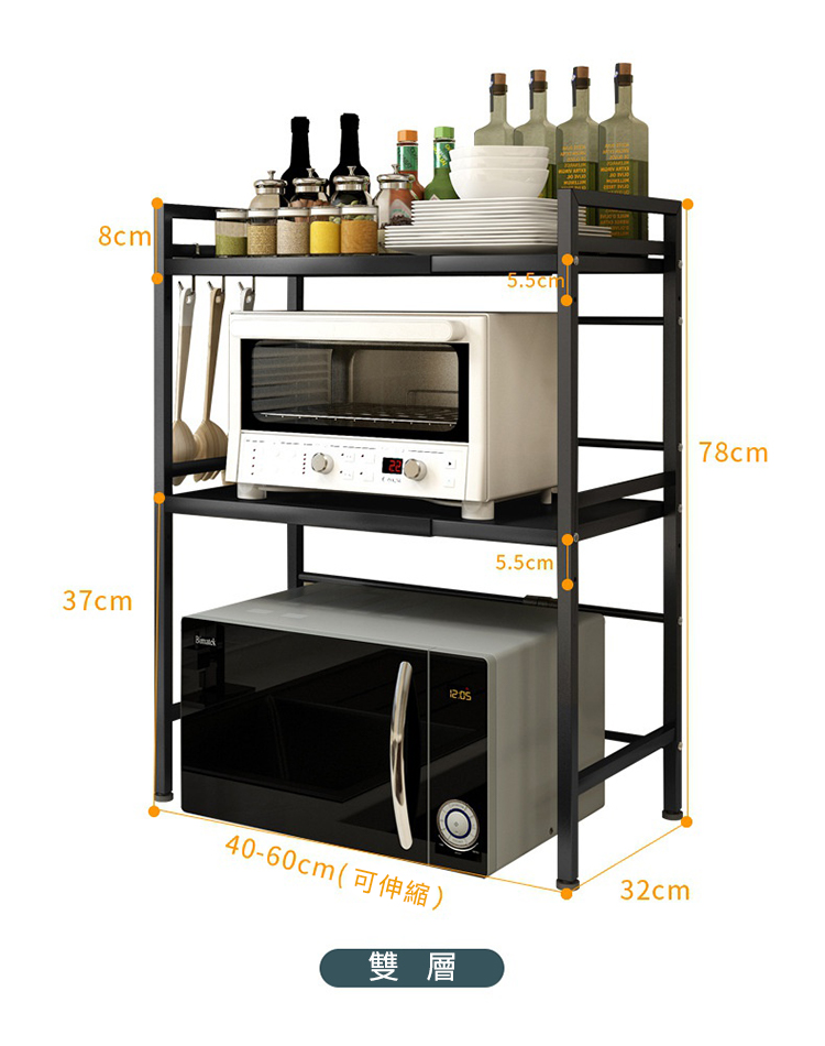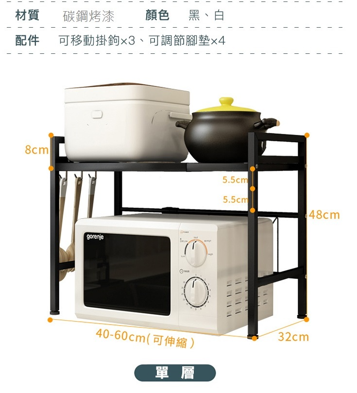 包裝內容物:一入裝 雙層微波爐架