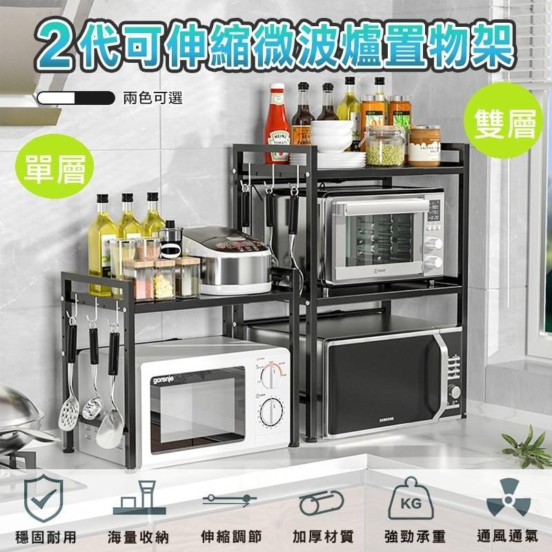 【商品規格】 二代可伸縮微波爐置物架 單層微波爐架
