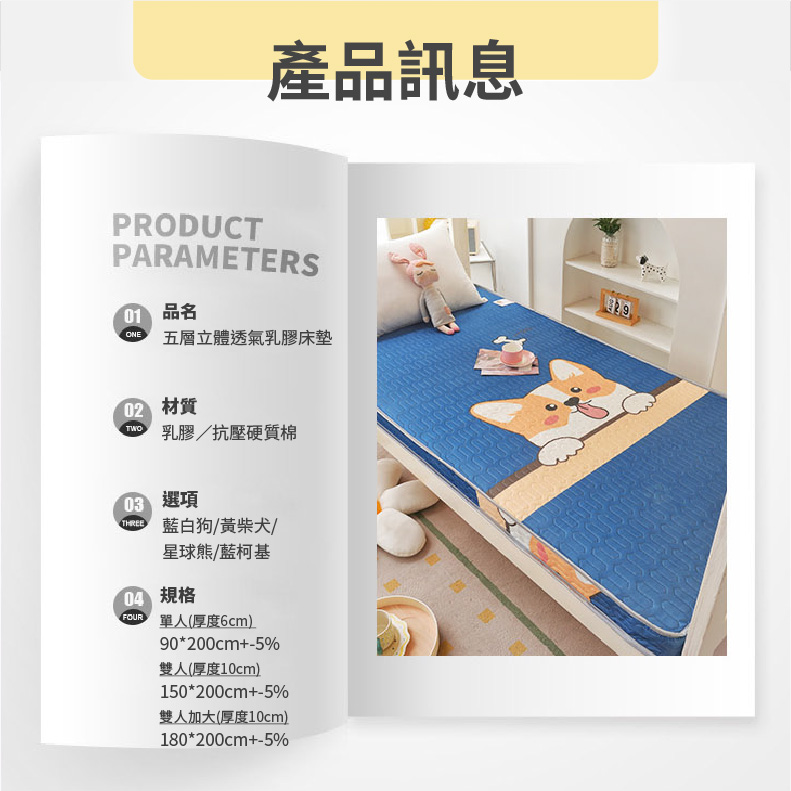 規格:單人(6cm)-90x200cm+-5%/雙人(10cm)-150x200cm+-5%/雙人加大(10cm)-180x200cm+-5%