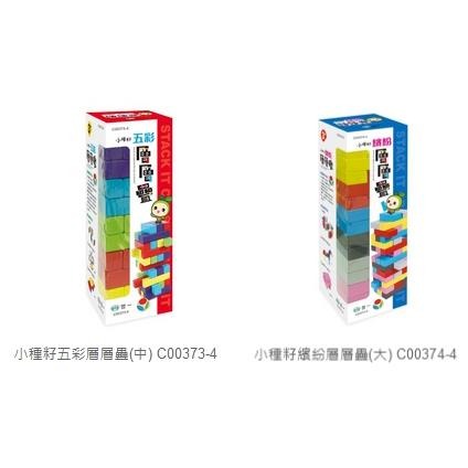 品名:小種籽繽紛層層疊 商品條碼:4719742175926 規格(mm):231*78*78 內容簡介: 本產品由四十二個長方體排列組合而成,每一層皆有三個(可依照堆疊玩法改變),藉由抽出積木往上疊的玩法,讓孩子除了玩,也能訓練手眼協調、思考邏輯和手指靈活度,更能促進親子關係。本產品以優質木材製作,積木的四周磨去尖角,材質上有自然紋路,並印上繽紛的顏色,不但玩得安心,更兼具收藏價值。附贈一顆骰子增添更多玩法。 ********************************************************************************************************************************** 品名:小種籽五彩層層疊 商品條碼:4719742177326 規格(mm):192*72*72 內容簡介: 五彩層層疊,由四十塊長方體所組成,每一層皆有四個(可依照堆疊玩法改變),藉由抽出積木往上疊的玩法,讓孩子除了玩也能訓練手眼協調、思考邏輯和手指靈活度,更能促進親子關係。本產品以優良木材製作,豐富的色彩搭配,並磨去積木四周尖角,玩得更安心,並附贈一顆骰子添增更多玩法。