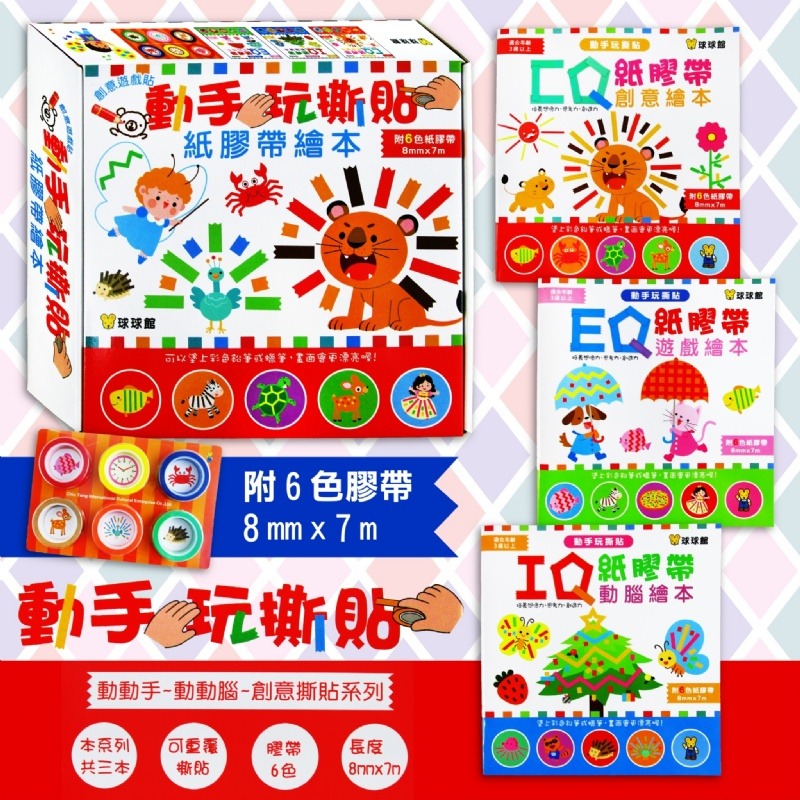 球球館 動手玩撕貼-紙膠帶繪本(3本遊戲書+6色紙膠帶)