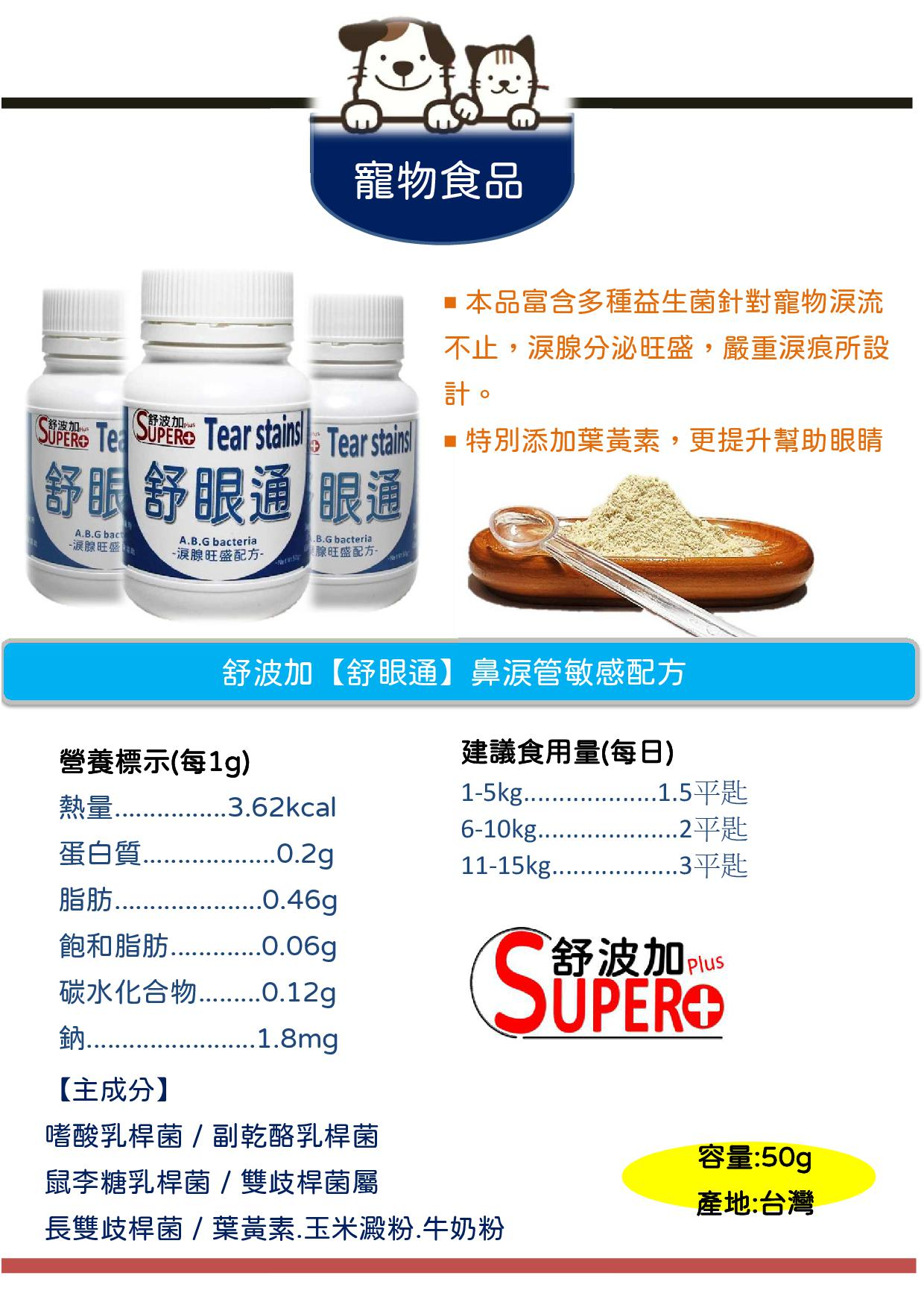 【舒波加 SUPER+】 舒眼通 (專犬設計) 淚漬 淚痕 淚腺 寵物營養保健品 營養品
