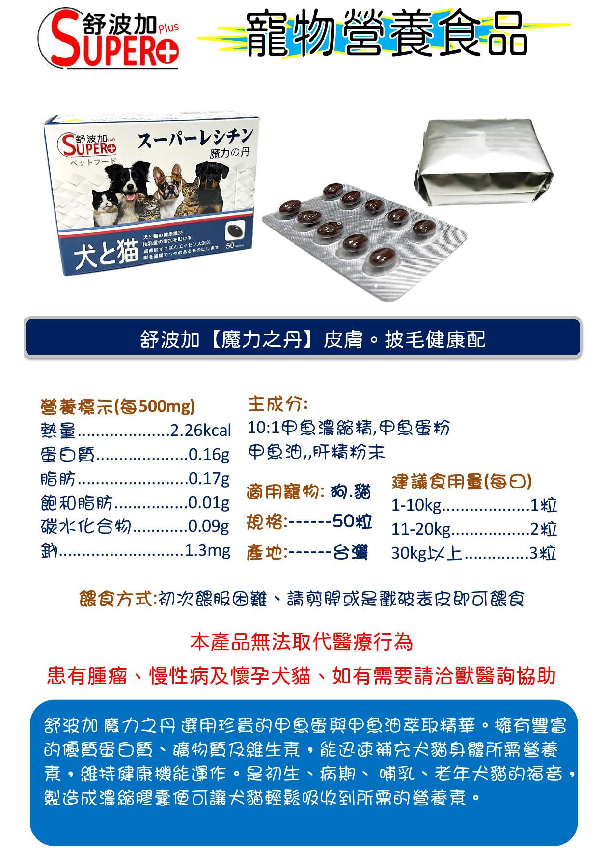 【舒波加 SUPER+】魔力之丹50粒 (犬貓設計) 鱉丹 鱉蛋 甲魚 寵物營養食品 爆毛丹 營養品