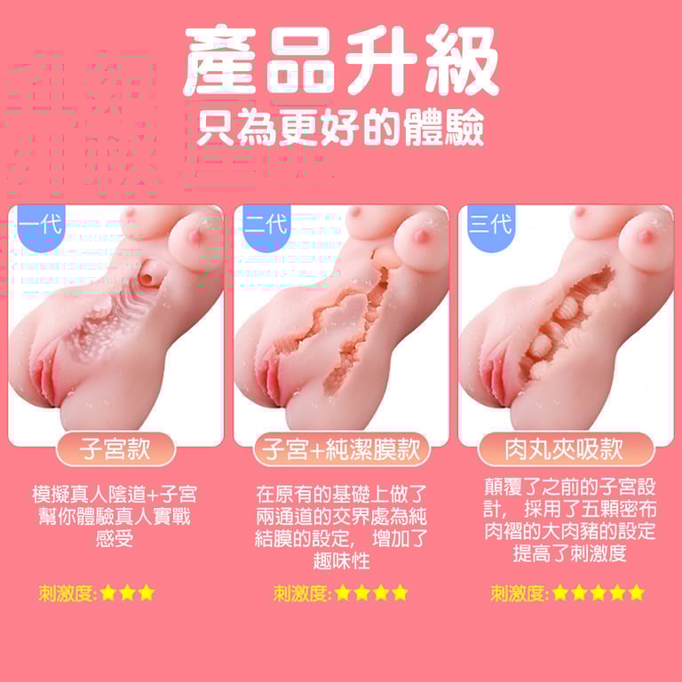 三代肉丸夾吸款,這款是剛上市的,刺激上再次加强,五顆大肉丸在通道内,抽插時摩擦到這些肉丸敏感度升级。