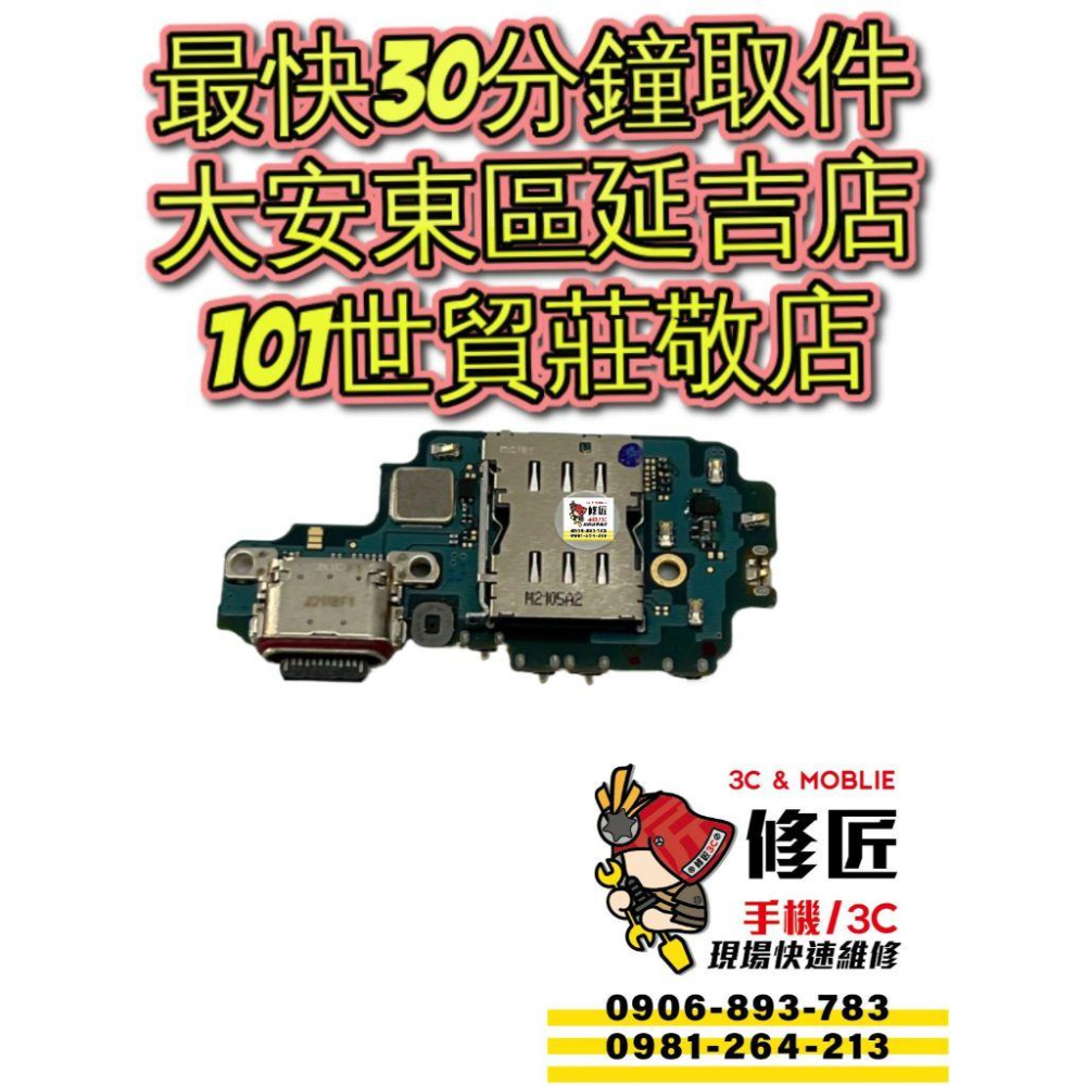 https://s-cf-tw.shopeesz.com/file/tw-11134208-7r98q-lo9p7b5xgawy70 Samsung三星 S22Ultra充電孔 SM-S908安裝完成 !1299!元 現場快速維修最快【30分鐘】即可取件~! *維修更換提供長達3個月保固* (門市僅提供現場維修 無提供零件自取) https://s-cf-tw.shopeesz.com/file/tw-11134208-7r990-lo9p7b5xewci53 店面地址圖文介紹 閱覽順序分別為 1.大安東區延吉店 2.101世貿莊敬店 https://s-cf-tw.shopeesz.com/file/tw-11134208-7r992-lo9p7b5xc37m08 修匠3C 【大安東區延吉店】    地址:台北市大安區延吉街140之1號1樓       *正延吉街上*(非巷內)  過忠孝東路四段216巷看到延吉街!右轉!  順方向右手邊可看到修匠3C 【東區延吉店】      修匠正對是{南屏鵝肉}        右邊是{遠傳電信}        左邊是{佃權關東煮}      營業時間:中午12點到晚上9點       (無空班時間~無公休日)        電話:0906-893-783     (大安東區延吉店公務機號碼)   https://s-cf-tw.shopeesz.com/file/tw-11134208-7r98x-lo9p7b5xdhs228 修匠3C【信義莊敬店】 地址:台北市信義區莊敬路451號1樓 (近松仁路與莊敬路口~卡多摩旁) 修匠正對{中華電信} 右邊{寶島鐵板燒} 左邊{卡多摩信義莊敬店} 營業時間:中午12點到晚上9點 (無空班時間~無公休日) 電話 :0981-264-213 (信義莊敬店公務機號碼)      其餘型號零件可至修匠    賣場查詢https://shopee.tw/fixphone451    或者https://shopee.tw/hankchentp 👩‍⚕️【~手機診療室~】👨‍⚕️ 我們擁有最專業的診療團隊技術,急救過無數重殘手機病例, 擁有超過十年以上的服務資歷與經驗。 在我們眼裡,沒有救沒活的手機,只想救的手機! 歡迎來店(電)諮詢,我們提供最專業的服務技術給您~💁‍♂️ #台北維修 #快速維修 #電池更換 #電池老化 #電池衰退 #專業快速維修 #3C速修 #電池耗電 #電池膨脹 #電池維修 #台北專業速 #現場維修 #充電不良 #電池故障 #自動關機