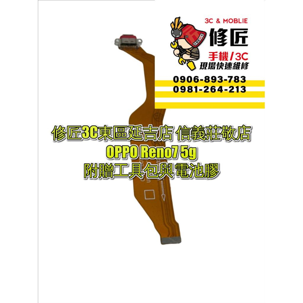 https://s-cf-tw.shopeesz.com/file/tw-11134208-7qul4-lhwxy2761l1q0c 現場快速安裝 施工時間30分鐘即可取件 透明化維修更換 提供長達3個月保固 OPPO Reno7 5g充電孔連工帶料安裝完成 !899!元  (門市僅提供現場維修 無提供零件自取)      修匠3C 【大安東區延吉店】    地址:台北市大安區延吉街140之1號1樓       *正延吉街上*(非巷內)  過忠孝東路四段216巷看到延吉街!右轉!  順方向右手邊可看到修匠3C 【東區延吉店】      修匠正對是{南屏鵝肉}        右邊是{遠傳電信}        左邊是{佃權關東煮}      營業時間:中午12點到晚上9點       (無空班時間~無公休日)        電話:0906893783     (大安東區延吉店公務機號碼)      修匠3C【信義莊敬店】    地址:台北市信義區莊敬路451號1樓    (近松仁路與莊敬路口~卡多摩旁)      修匠正對{中華電信}        右邊{寶島鐵板燒}        左邊{卡多摩信義莊敬店}      營業時間:中午12點到晚上9點       (無空班時間~無公休日)        電話 :0981264213       (信義莊敬店公務機號碼)      其餘型號零件可至修匠    賣場查詢https://shopee.tw/fixphone451    或者https://shopee.tw/hankchentp #台北維修 #專業快速維修 #台北專業速 #3C速修 #現場維修 #快速維修 #電池更換 #電池耗電 #充電不良 #電池老化 #電池膨脹 #電池故障 #電池衰退 #電池維修 #自動關機 手機殼 iphone 13 手機殼 apple watch 錶帶 airpods pro 保護套 airpods 保護套 iphone 12 手機殼 iphone 11 手機殼 行動電源 iphone 13 apple watch iphone iphone 13 pro 手機殼 iphone 13 pro max 手機殼 手機掛繩 i13 手機殼 犀牛盾 ipad 手機 iphone 11 手機架 13 pro 手機殼 小米手環 6 12.9 手機支架 airpods iphone 12 Oppo i11 手機殼 iphone 13 pro ipadair 4 保護套 鼠墊 鍵盤 筆電 滑鼠 顯示卡 電腦螢幕 無線滑鼠 礦渣 3060ti 隨身碟 無線鍵盤 ssd 電腦主機 鍵帽 3070 螢幕 3080 筆電支架 機械鍵盤 筆電架 機殼 電腦 延長線 電腦機殼 標籤機 網路線 17.8 讀卡機 17.5 3070ti
