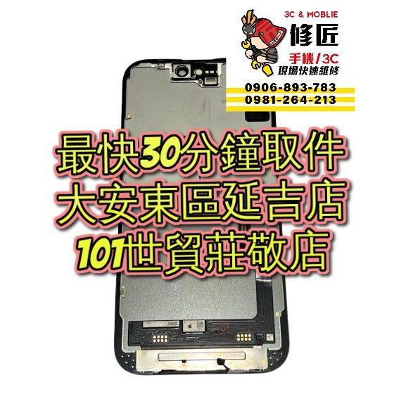 https://s-cf-tw.shopeesz.com/file/tw-11134208-7r98q-lo9p7b5xgawy70 iPhone15 螢幕總成 A2846 A3089 A3092 A3090 安裝【原材質】完成 !8990!元 現場快速維修最快【30分鐘】即可取件~! *維修更換提供長達3個月保固* (門市僅提供現場維修 無提供零件自取) https://s-cf-tw.shopeesz.com/file/tw-11134208-7r990-lo9p7b5xewci53 店面地址圖文介紹 閱覽順序分別為 1.大安東區延吉店 2.101世貿莊敬店 https://s-cf-tw.shopeesz.com/file/tw-11134208-7r992-lo9p7b5xc37m08 修匠3C 【大安東區延吉店】    地址:台北市大安區延吉街140之1號1樓       *正延吉街上*(非巷內)  過忠孝東路四段216巷看到延吉街!右轉!  順方向右手邊可看到修匠3C 【東區延吉店】      修匠正對是{南屏鵝肉}        右邊是{遠傳電信}        左邊是{佃權關東煮}      營業時間:中午12點到晚上9點       (無空班時間~無公休日)        電話:0906-893-783     (大安東區延吉店公務機號碼)   https://s-cf-tw.shopeesz.com/file/tw-11134208-7r98x-lo9p7b5xdhs228 修匠3C【信義莊敬店】 地址:台北市信義區莊敬路451號1樓 (近松仁路與莊敬路口~卡多摩旁) 修匠正對{中華電信} 右邊{寶島鐵板燒} 左邊{卡多摩信義莊敬店} 營業時間:中午12點到晚上9點 (無空班時間~無公休日) 電話 :0981-264-213 (信義莊敬店公務機號碼)      其餘型號零件可至修匠    賣場查詢https://shopee.tw/fixphone451    或者https://shopee.tw/hankchentp 👩‍⚕️【~手機診療室~】👨‍⚕️ 我們擁有最專業的診療團隊技術,急救過無數重殘手機病例, 擁有超過十年以上的服務資歷與經驗。 在我們眼裡,沒有救沒活的手機,只想救的手機! 歡迎來店(電)諮詢,我們提供最專業的服務技術給您~💁‍♂️ #台北維修 #快速維修 #電池更換 #電池老化 #電池衰退 #專業快速維修 #3C速修 #電池耗電 #電池膨脹 #電池維修 #台北專業速 #現場維修 #充電不良 #電池故障 #自動關機