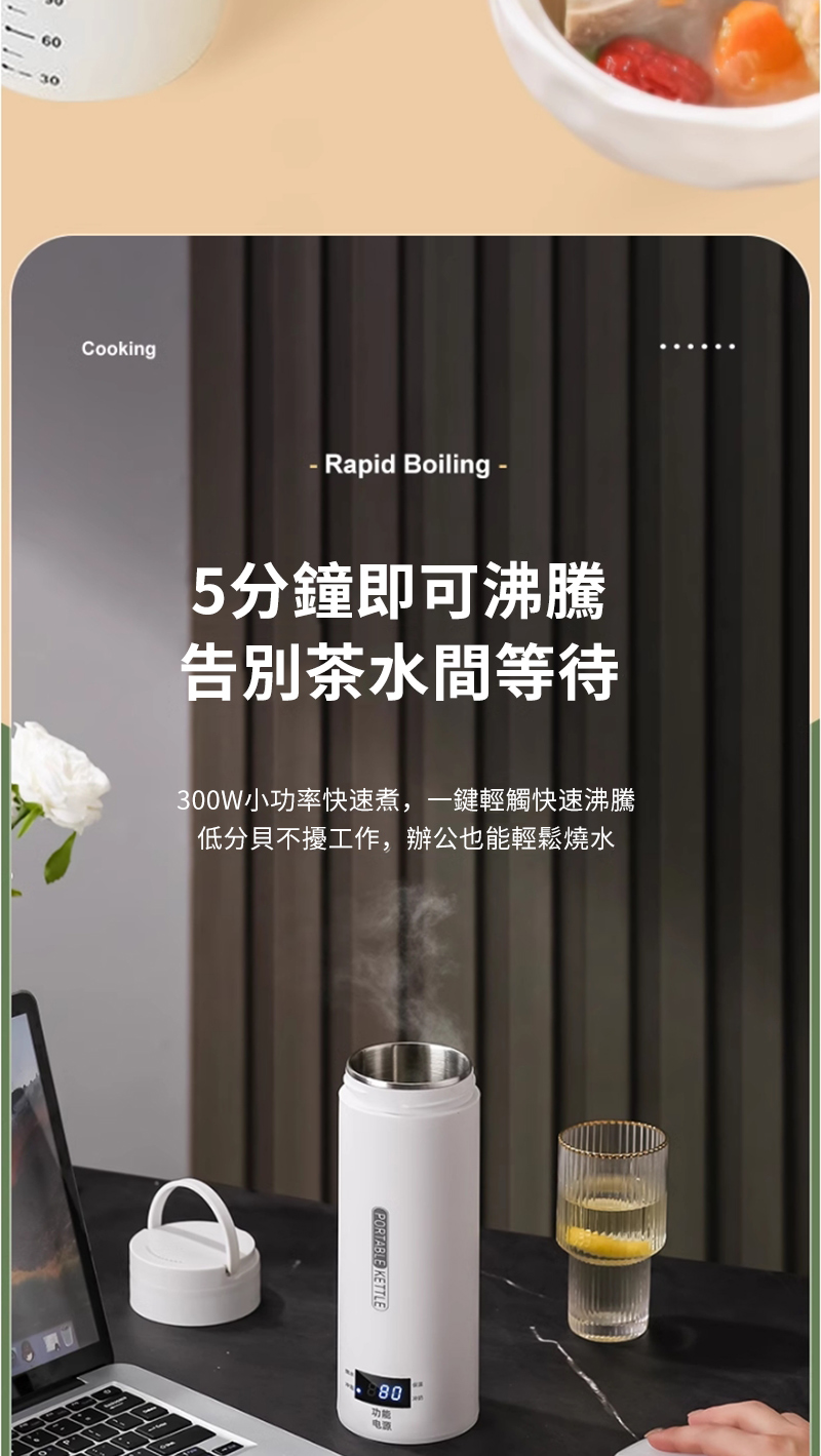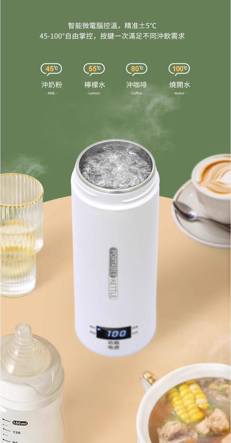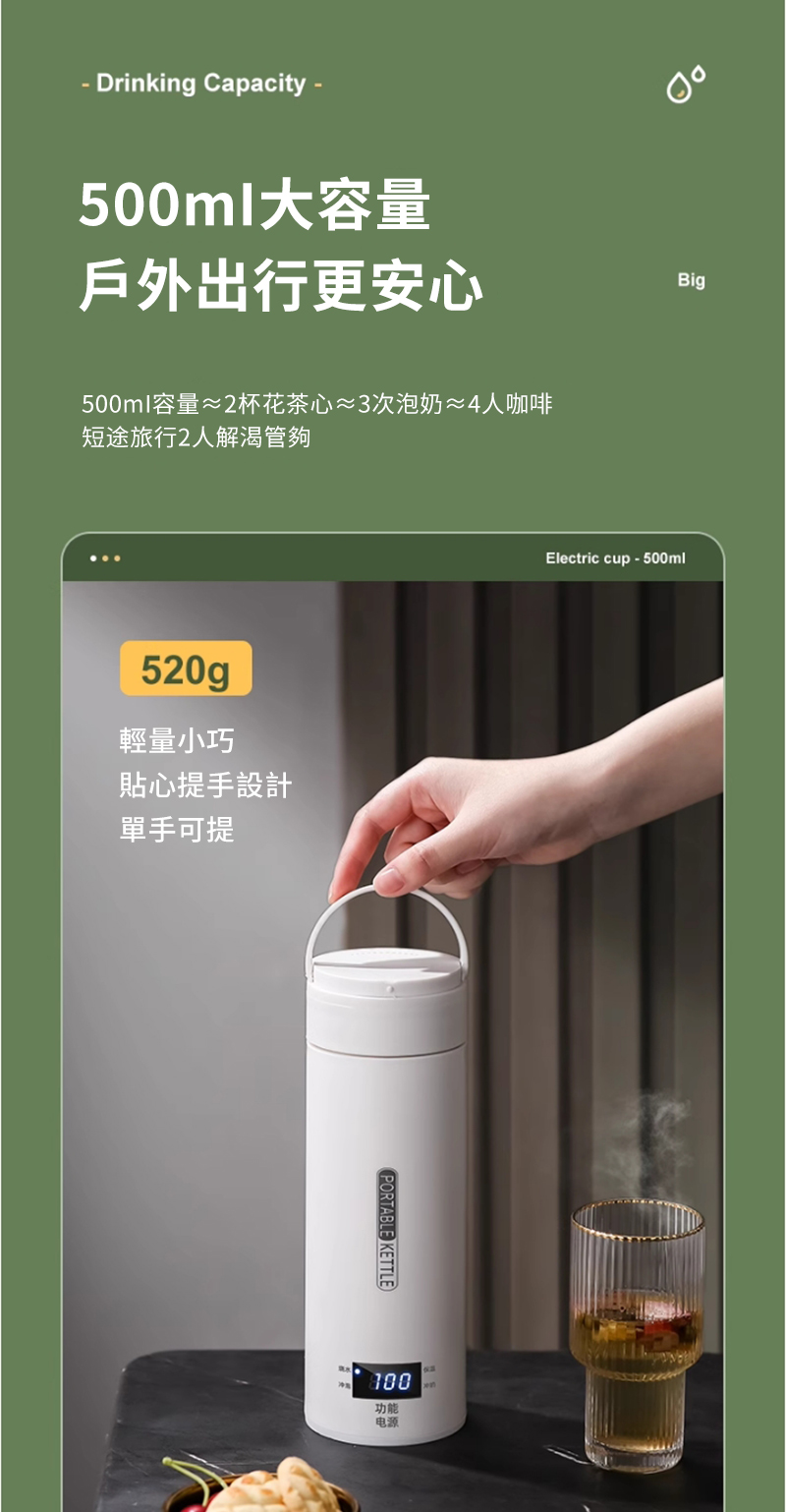 316不銹鋼電動燒水杯 智能加熱一體保溫杯 旅行便攜電熱水壺 快煮壺 500ML